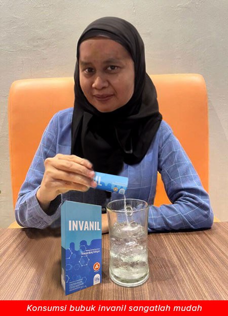 Saya membaca petunjuk penggunaan dengan cermat dan mulai mengonsumsi Invanil sesuai anjuran. Cara menggunakannya sangat praktis—cukup mencampurkan bubuk dengan segelas air. Saya meminumnya dua kali sehari, pagi dan malam. Yang lebih menyenangkan, rasanya enak dan tidak terasa seperti obat sama sekali!