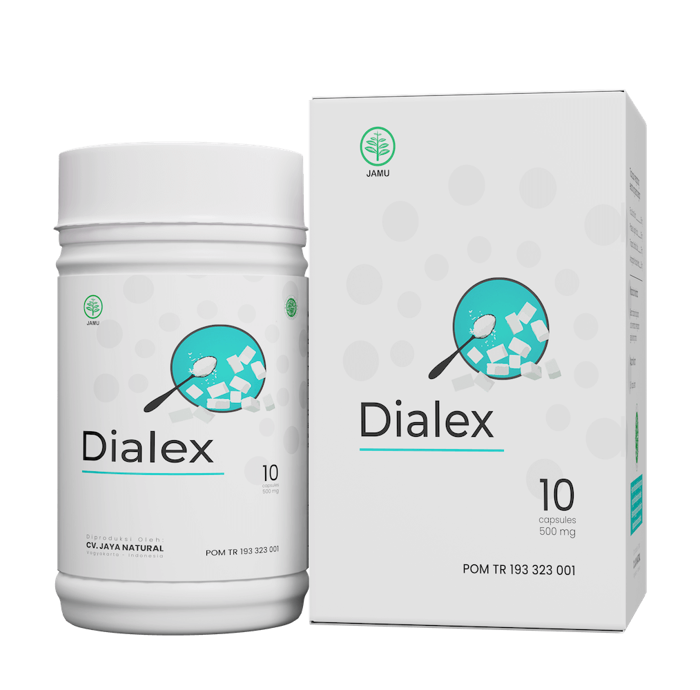 Dialex mengandung ekstrak Andrographis Paniculata Herba yang berfungsi untuk menghilangkan diabetes dalam waktu singkat secara alami, Swietenia Mahagoni Semen yang memiliki khasiat untuk menurunkan kadar gula darah, dan Orthosiphonis Stamineus Folium yang berfungsi untuk menjaga fungsi tubuh dan meningkatkan energi.