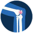 - Atrofi otot (disebabkan rawan rosak, pergerakan sedikit), berjalan tempang
