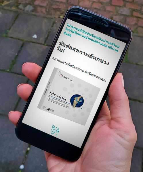 — ผลิตภัณฑ์ที่เกิดจากการทุ่มเททางการแพทย์ของผมมาหลายสิบปี มีชื่อว่า Movinix มันช่วยกำจัดอาการปวดข้อและไม่สบายตัวได้ภายใน 4 วัน และฟื้นฟูสุขภาพได้ภายในหนึ่งเดือน แม้ในกรณีที่รุนแรงที่สุด
