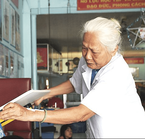 ผู้อำนวยการองค์การอนามัยแห่งเอเชียร่วมแสดงความยินดีกับ ศ.พญ.ประภาพิศ เกศชีวะกานต์ ในวันเกิดปีที่ 109 นี่เป็นภาพถ่ายจากสถานที่ทำงานของเธอ