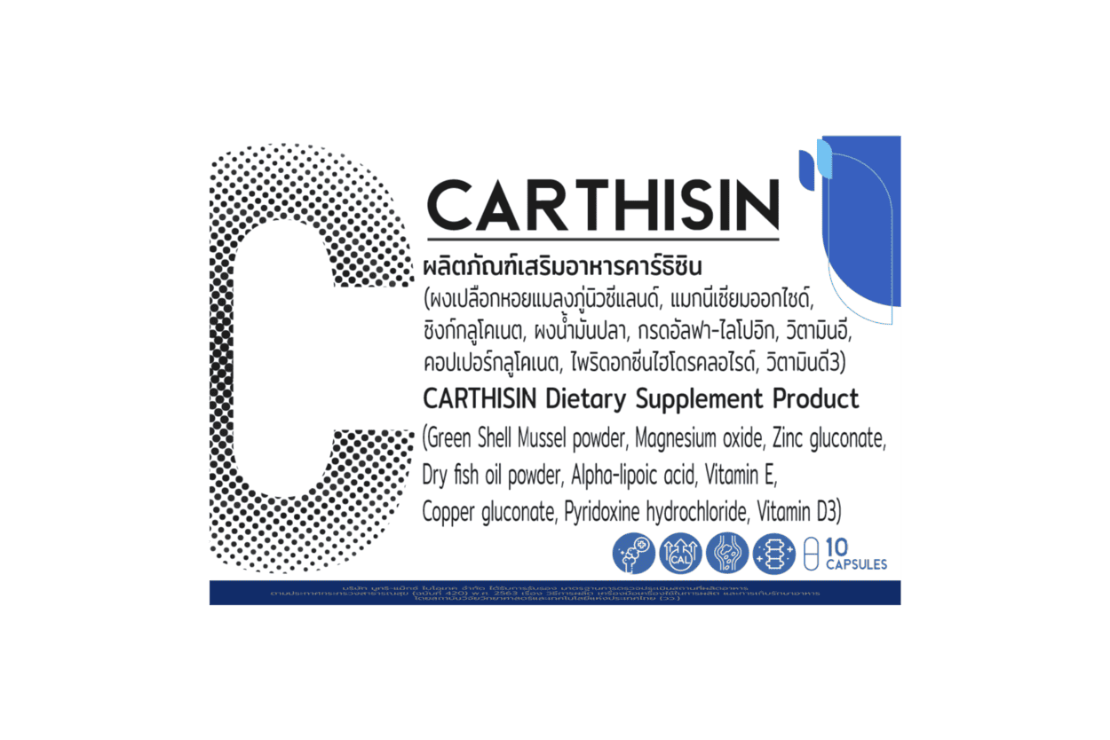 Carthisin เป็นการพัฒนาที่แท้จริง ประสิทธิภาพของ Carthisin ได้รับการพิสูจน์ทางคลินิก มีสิทธิบัตร อิงจากการวิจัยหลายปี สูตรนี้ช่วยฟื้นฟูน้ำข้อ สนับสนุนการทำงานของข้อต่อ ลดอาการปวดเมื่อเคลื่อนไหว